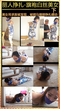 【逍遥】旗袍肉丝美女吴晗逃跑未遂惨遭二次捆堵折磨(欧式直臂捆绑+驷马、连裤袜塞嘴、胶布绷带缠绕封眼)