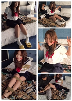 【美束映画】水手服居家少女被入室劫匪绑架囚禁 白色丝袜 驷马海老缚