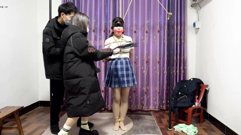 【子衿】大胸女孩乐乐JK口球踮脚吊被闺蜜揉胸一个人蒙眼放置真实反应