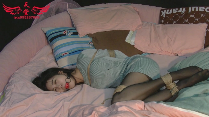 独居亚楠下班回家发现门口有人放了一只玩具娃娃,看样子挺喜欢就带回家。捡来的娃娃趁晚上睡觉操纵绳子爬上亚楠身上,从绑住手脚开始,口球嘟嘴,最后驷马捆绑。