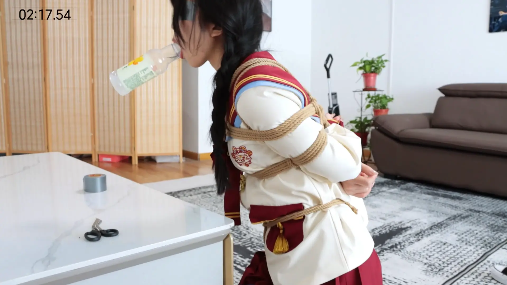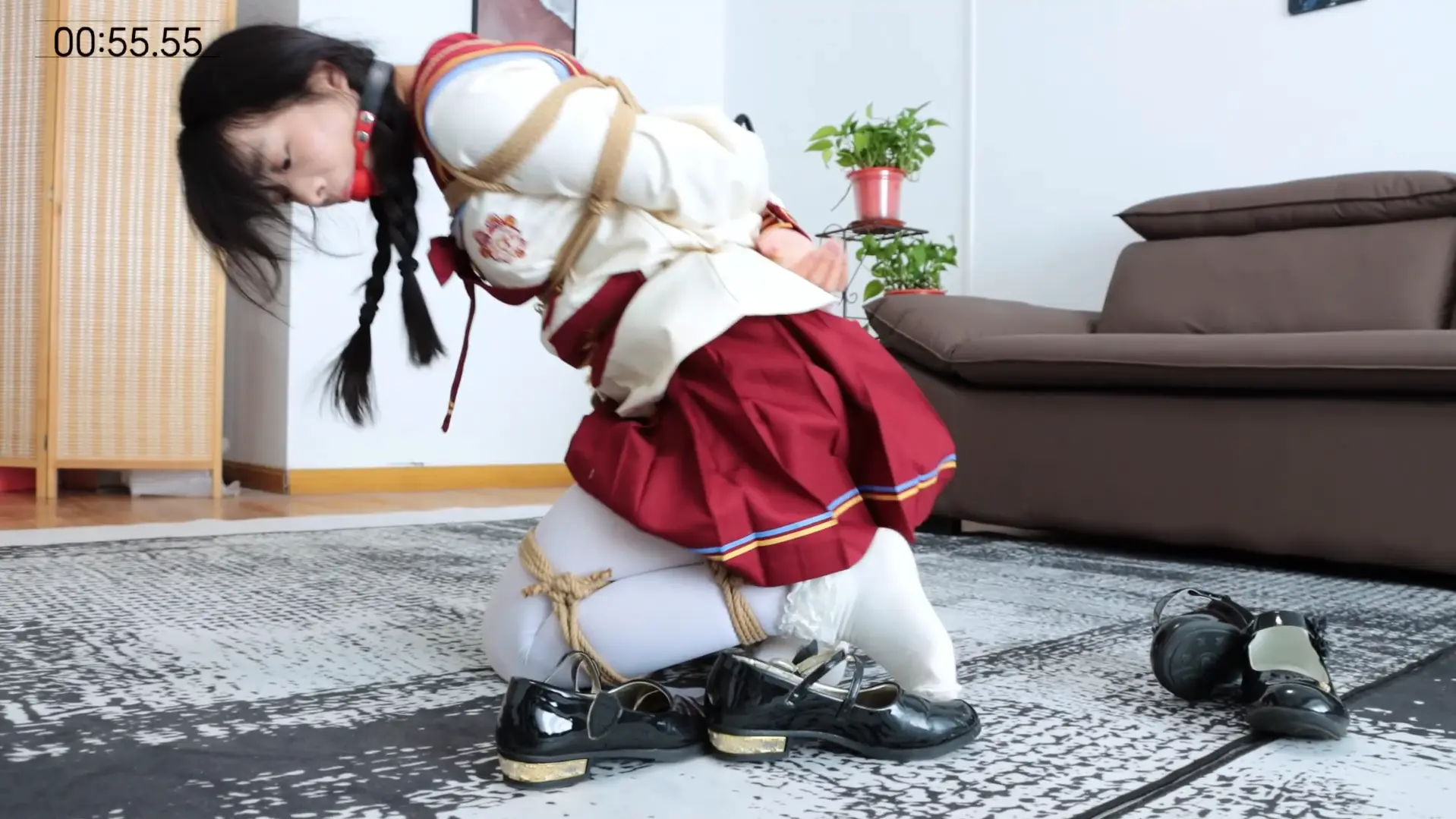 惩罚环节:参考惩罚环节的图片,完全按照图中的拘束方法将模特拘束,开始捆绑放置,每有一个没按时完成的项目多放置3分钟(例如:有7个没完成的项目就放置21分钟),并在放置过程中将自己选的图片内容详细地描述出来,包括人物、服装、捆绑方法、动作、以及图片内主角可能会遭遇的事情等等(描述完了时间还没到的话就再重复描述一遍)。
