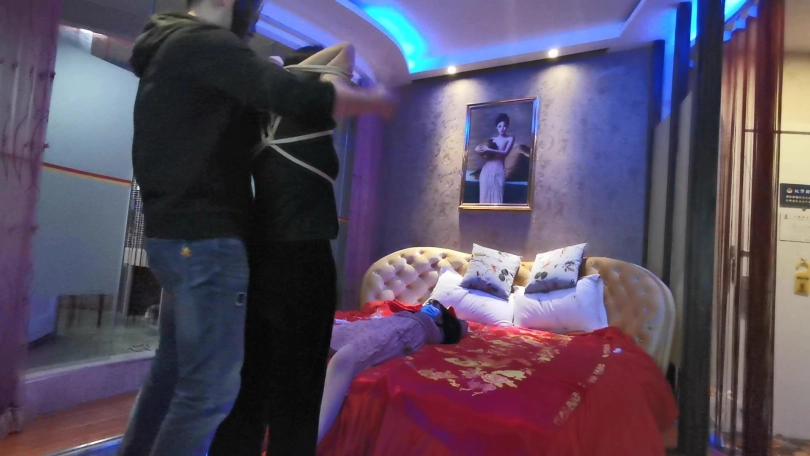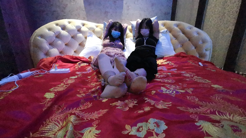 捆绑好后让她们都躺在床上,棒子挑蛋轮番伺候,双方彼此用脚攻击对方脸部。。