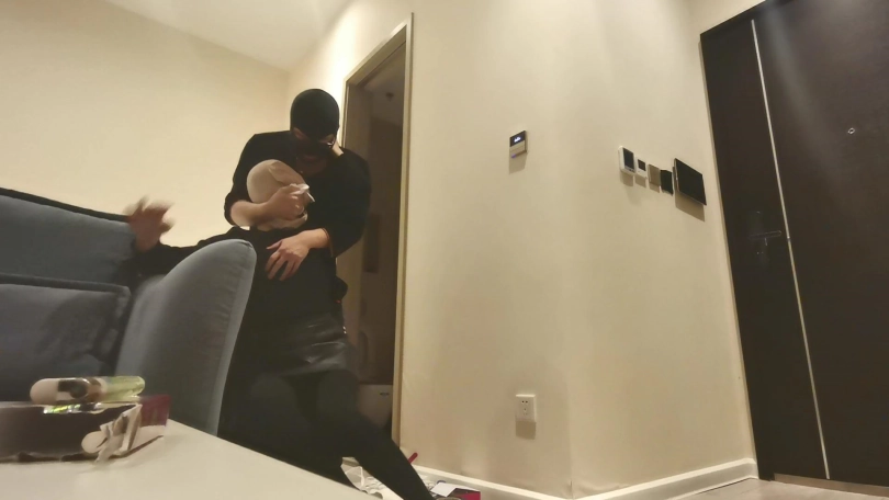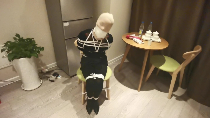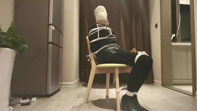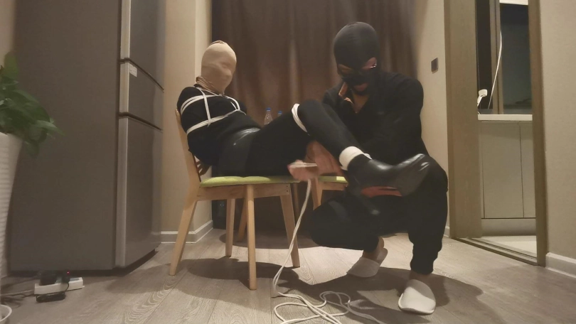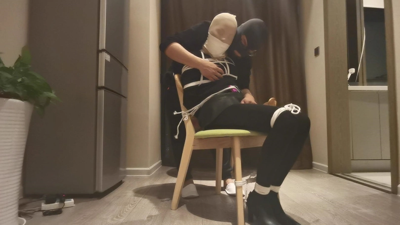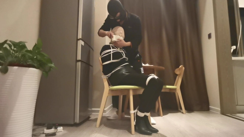 房主家中不断遭遇盗窃,决定要抓住对方并好好教训下。蒙面女匪像往常一样又来盗窃,到处翻找财务,突然发现地上有一包东西,上前查看发现里面全是绳子、胶布、口球等一些奇怪的东西,正在好奇这些东西是干什么用的时候,早已埋伏多时的房主从后面抱住她,并用喷过药水的布捂住了她的口鼻,女匪惊慌的挣扎,但很快就昏睡了过去。房主把她拖到椅子上,并用绳子把她绑在椅子上,女匪醒来不断挣扎,双腿乱蹬,但很快她的双脚也被紧紧的捆在椅子上,动弹不得。房主拿出袜塞进女匪的嘴里,并给她戴上口球,外面用胶布紧紧的封住,这样女匪只能发出微弱的呜呜声。房主又拿出DD放在她的下面,突然袭来的快感让女匪不断呻吟,身体不断抽搐。房主还一边抚摸她的连个蜜桃使她身体更加敏感。就这样女匪被迫的享受着痛苦并快乐的感觉,最后下面终于释放瘫软在椅子上。最后女匪又被房主迷晕,打算留下来慢慢玩弄。。。