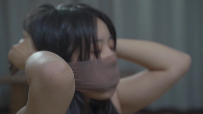 还脱下来塞满了自己的嘴巴(特写),随后又用其他的脏袜子把嘴巴 和眼睛也蒙起来