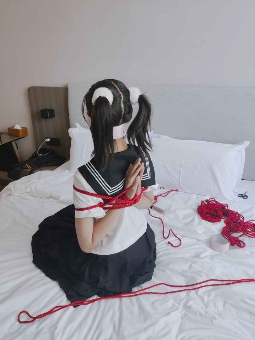 本期准备了六种生活中常见的TK工具:手指、梳子、牙刷、电动牙刷、电动牙刷马达、电动剃须刀的电动旋钮。我们会将穿着jk制服和白丝的双马尾少女用后手观音+驷马的方式紧缚起来,然后依次测试以上各种挠痒道具的效果:
