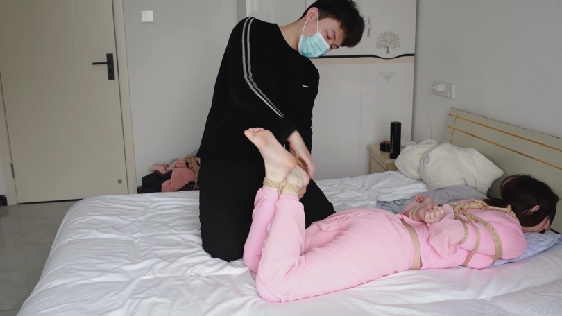 正在家里练习得瑜伽老师被惦记她很久得坏学生突然闯入,反绑手脚并用棒棒让老师欲罢不能。