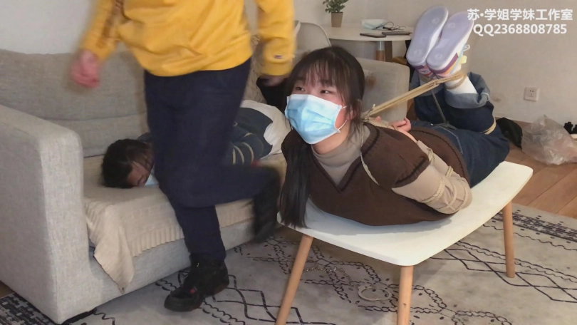 两个可爱的中学生小姐妹一起来试镜,初次体验捆绑。两人刚来的时候超级紧张,站在门口一直往里望,拉着手不赶进来。进来一套五花之后,两人都放松了下来,开始坐在一起被绑着聊天。其中一个练过舞蹈,柔韧性超好,极限驷马不在话下。另一个小时候玩过家人的手铐,把小伙伴铐起来结果解不开了,还被大人打了一顿。五花+超紧驷马+戴镣下跪+戴镣行走,白鞋白袜。(耐克空军板鞋和阿迪stan smith)
