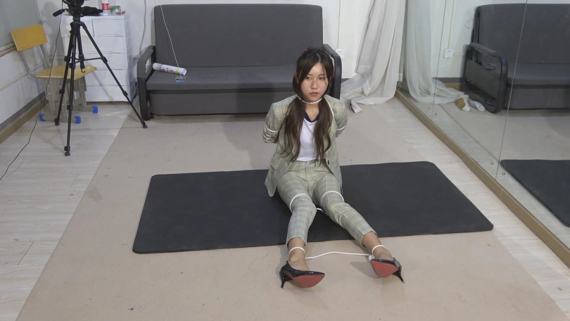 大学生美女然然,穿上西服显得多一分成熟与干练。反扭,押解,手铐,脚铐,扎带,押解绑,五花大绑,驷马挣扎等元素。