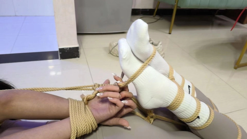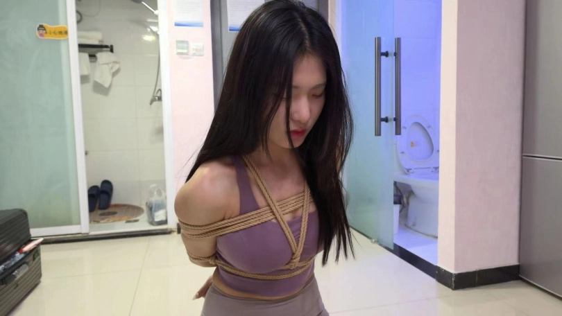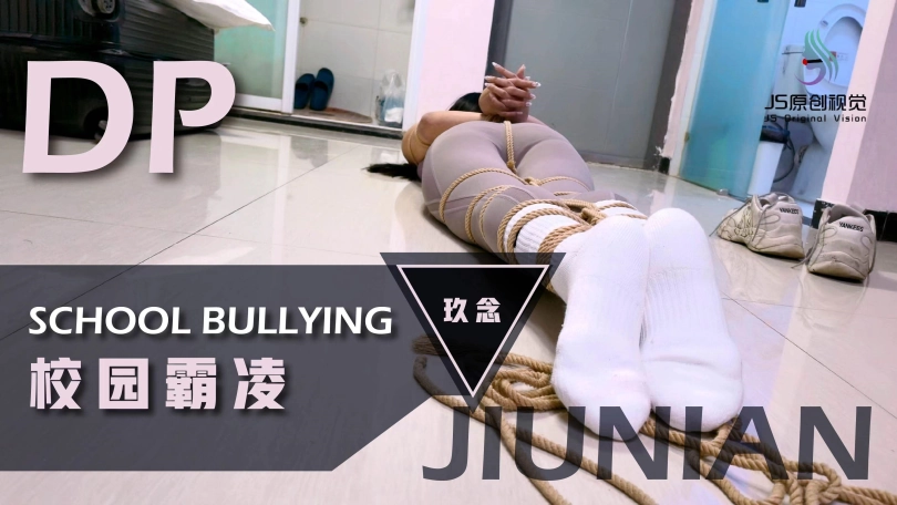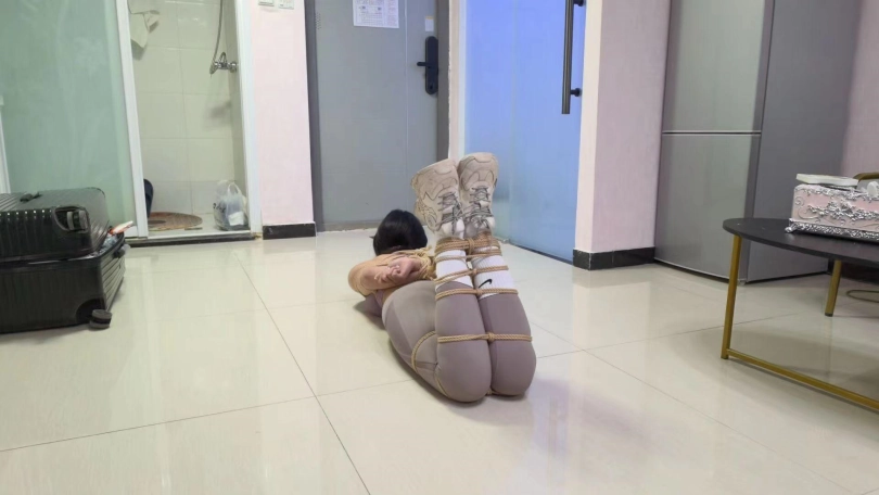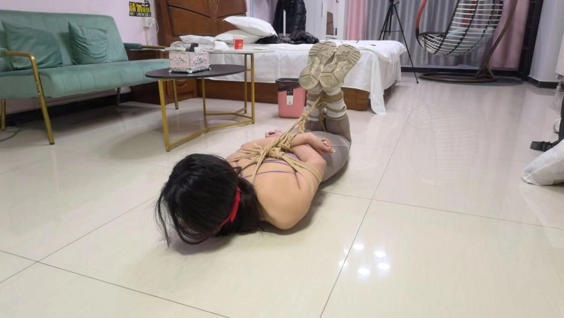 模特是颜值和身材很高的玖念。剧情介绍 校霸小狼给青纯的玖念同学打电话说到:小玖念,这个月的保护费今天给我拿来,不然晚上走路小心点。玖念接到电话后害怕了,但数了数口袋里的钱只有200块说:唉,给她了我就没有花了,先拿去给他再说吧。一会,玖念来找到小狼,将200元交给他,小狼看了眼就200元问到:就那么点你糊弄我?玖念说:我就这么点了。你爱要不要。小狼说:还嘴硬,今天让你走不了。然后一把抓住玖念,压着她跪下,然后一只手反剪双手,一只手抓着她头发,让她抬起头仰视小狼,玖念说到:你要干嘛?小狼说:既然不给钱,那就把人留下。然后,用绳子捆绑她,捆绑好双手后,玖念问她:你把我绑起来是犯法的懂吗?小狼:让你说话了吗?然后拿来一块毛巾,一只手捏住她嘴巴,让她张嘴,然后将一块毛巾塞进去,一边塞一边说:让你说话。嘴巴塞了毛巾后,又取来个口球给她带上,玖念发出呜呜呜呜声音,小狼一边拉紧口球一边说:让你乱叫。这是你自找的堵好她的嘴后,小狼又让她跪好,然后用绳子捆股绳,接着把她放倒,用绳子把双脚,捆绑好手脚后,再用绳子把她绑成驷马。捆绑好后,小狼摸了摸玖念屁股,说到:把你绑起来,才发现你身材这么丰满呀。然后开始摸了她的屁股,大腿,腰,然后把她翻身侧过来摸肚子,胸,再来回拉她的股绳,玖念发出呜呜呜呜声,还扭动身子挣扎反抗。小狼摸后说到:好丰满,好爽呀。摸了一会,想上厕所对玖念说:老实待着,一会再回来玩你。说完用脚把她翻着侧身,然后问:老实点,听见没?玖念呜呜呜并点头。小狼又用脚把她翻趴地上。小狼走后,玖念看了她去上厕所后,扭动着身子往门口爬,左右扭着爬到门口,到了门口后,呜呜呜呜,用脸蹭门想让口球松掉,这时小狼发现了想跑的她,走过来,抓着她的腿把她拖走,玖念呜呜呜摇了摇头含糊不清说:不要不要!小狼把她拖到房间中央后,把她鞋带解开,然后脱了她的鞋子,然后拿到她脸上让她稳鞋,一会解开她的口球,取出里面的毛巾,坐在她身上一只手抓住她头发让她抬头,一只手拍了拍她的脸,说到:这么不老实?是不是想挨打?玖念说到:不要不要,我不敢跑了,都听你的。小狼先将她头发绑成高马尾,然后拿了双棉袜塞到她嘴里,然后用米色绷带缠绕嘴巴,接着再用白色胶带缠绕封上。封嘴完后,解开高马尾让头发披下来,玖念呜呜呜。封完嘴后,小狼给玖念解开连接手脚的绳子,然后在玖念前面放了200元,然后走过来,拍了拍她屁股,对她说,你能爬到那200元边上,我就放开你,接着拍了拍她屁股说:开始吧。接着玖念就扭动身子往那里爬,一会爬到了,玖念呜呜含糊不清说:放了我吧可小狼并不打算放了她,抓住她的脚,又把她拖回来,然后用绳子绑她头发说到:我还没玩够呢,怎么能放了你?然后脱了她脚上的短耐克袜子,接着解开她嘴上的缠绕,取出嘴里的袜子,然后用脚上脱下来的棉袜,塞到她嘴里,接着用蓝色绷带缠绕,接着用红色胶带缠绕又用白色胶带缠绕封上。堵好嘴后,小狼又把她从新捆绑起来,腿还是绑成蛇缚,接着就是驷马倒攒蹄,捆成粽子后还不够,再绑头发让她强制抬头,玖念被绑成粽子一样只能呜呜呜呜,小狼又拿来一只红笔,在她嘴的白色胶带上写下“欠钱”两个字。然后拍她的脸,摸了摸胸和屁股后离开,留玖念在地上挣扎呜呜呜呜(此剧看点,塞得超满的嘴巴,紧紧的胶带缠绕,扭动挣扎丰满的身材,紧缚像粽子的模特。)