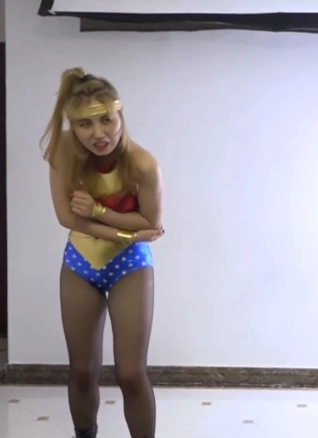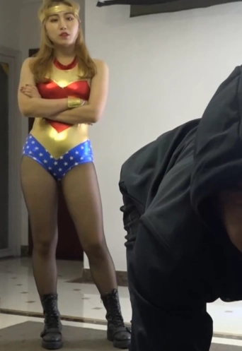 神奇女侠和一个拥有克制自己的能量的怪人战斗,怪人有一颗压制女侠的石头,女侠被折磨的苦不堪言