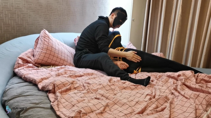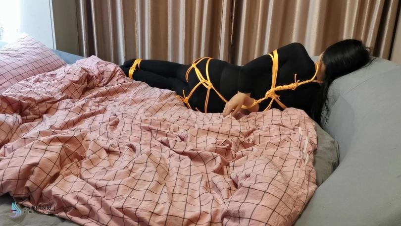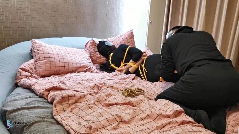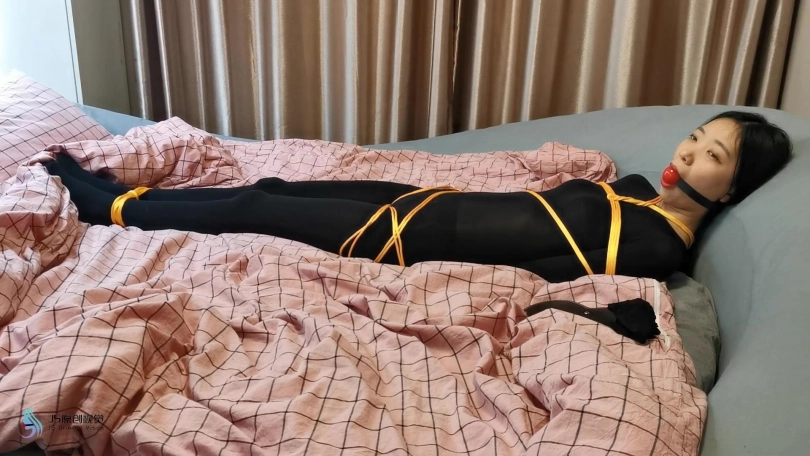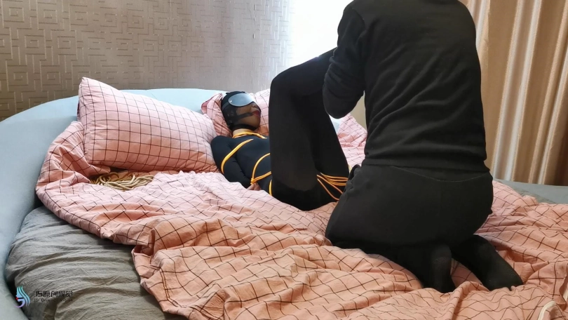 【JS】媛媛 连体衣 金色丝绳捆绑挠痒 SP 口球 眼罩 丝袜套头 玩足