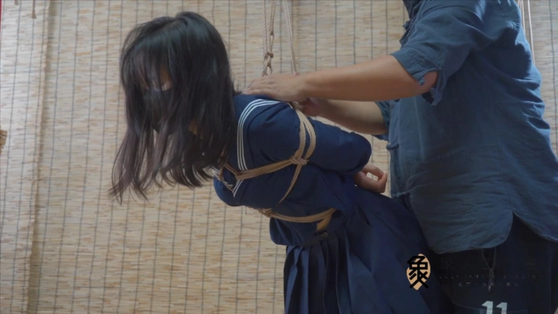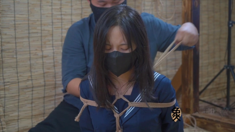 在膝盖,脚踝,股绳处都预留了绳环,从脚踝穿过上下胸绳后背交汇处,