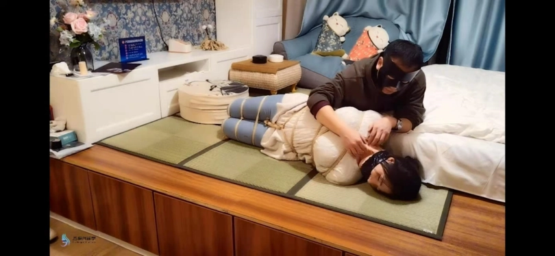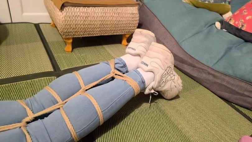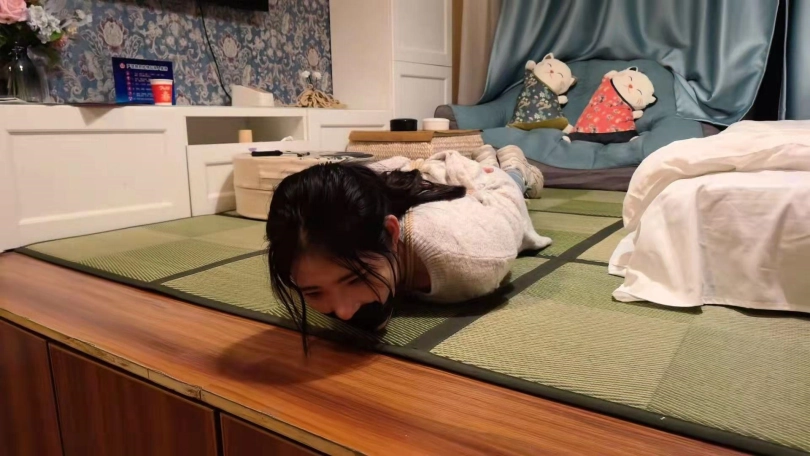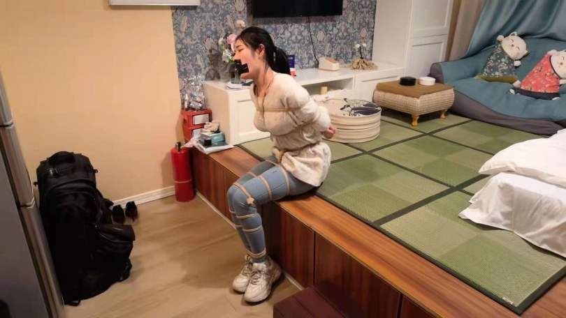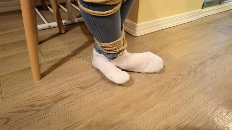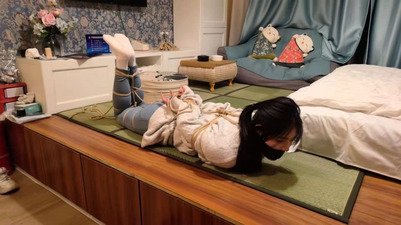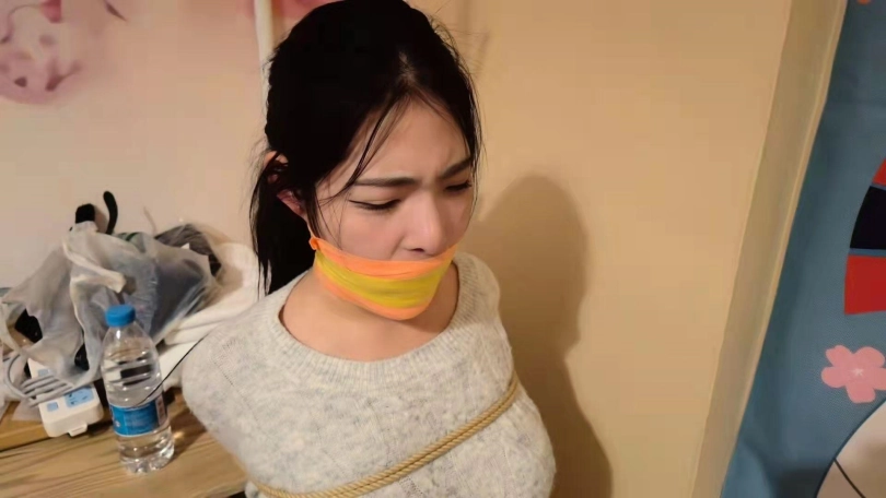 小狼同学换了班主任,但他仍然屡教不改,这天又闯下大祸,气的班主任玖念老师上门教训他。镜头一转,老师来到房间看到小狼正在床上玩手机,于是立马过去揪住他的耳朵,这一举动惹恼了小狼,她立刻把老师放倒然后坐到老师身上,老师剧烈挣扎,大喊放开我,而小狼拍打老师屁股又拿刀逼住她,命令她老实点,接着把她日式捆绑起来,双腿股绳加蛇缚,绑得结结实实的,接着往老师嘴里塞了毛巾,又封了几张厚胶布,捆绑嘟嘴后,他让老师老实点然后离开。可老师怎么会老实呢,一蹦一跳的到门口想要逃跑,最后还是被抓了回来,接着就被绑成驷马倒攒蹄,然后棉袜堵嘴,肉色绷带缠绕再黑色胶带封上,接着就是全身TK了,脱鞋挠脚心,挠腰,脖子,摸胸口,好不刺激,老师也受不了发出呜呜呜声音,玩弄一会,小狼给老师个挑战,让她自己挣扎要可以解开连接手脚的绳子就放了她,接下来就是挣扎环节了。最后老师解开了连接手脚的绳子,可小狼没打算放过她,,又把她欧式直臂缚接双腿捆绑,紧紧绑在椅子上,更过分的是,居然脱下了老师的原味白棉袜,塞到老师嘴里,然后再用粉色绷带缠绕,外面再用黄色胶带封,捆绑堵嘴好后离开,老师挣扎并呜呜呜。