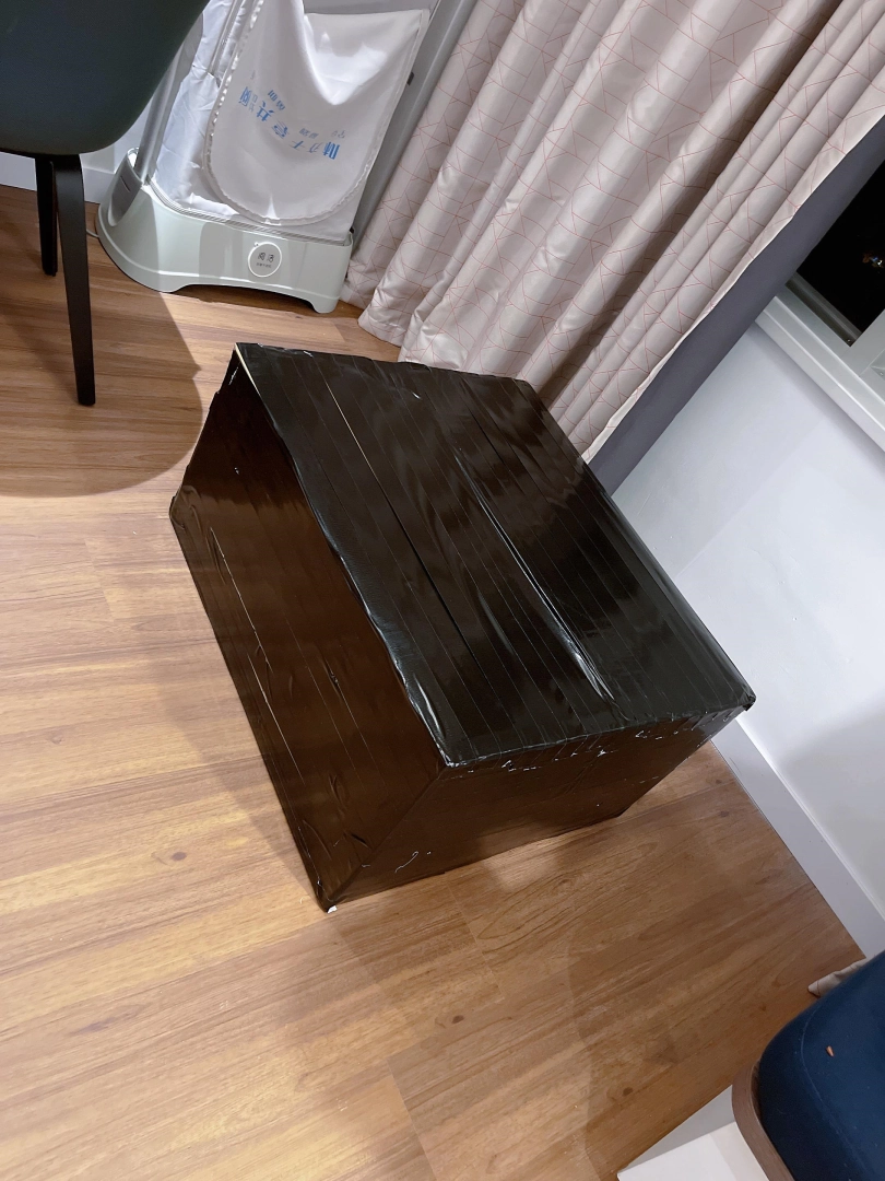 茶茶好像一直很喜欢物品化、封闭的play,今天也给茶茶弄个封闭装箱体验。