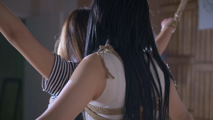创意绳艺造型,双女千手观音缚,前面那个表情有些夸张