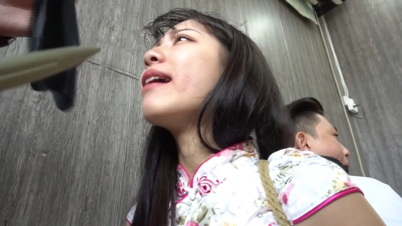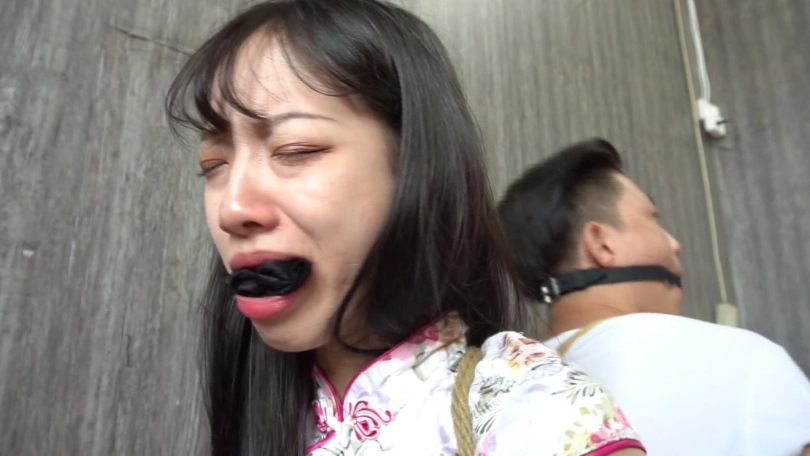 然而二人正打算逃离时劫匪突然拿着刀过来,看到二人想跑,生气的将二人重新五花大绑,双腿脚踝也并拢紧紧捆绑多道,并且给二人带上塞口球。