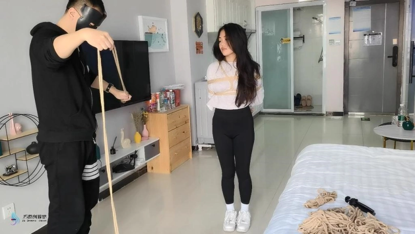 【JS】【曼曼】【意大利籍华人】日式股绳白棉袜捆脚行走