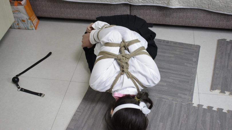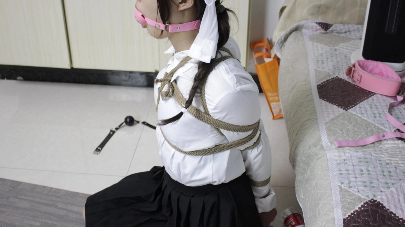 【子衿】挣扎无用,菲菲被绑架直臂放置,驷马口球口水直流