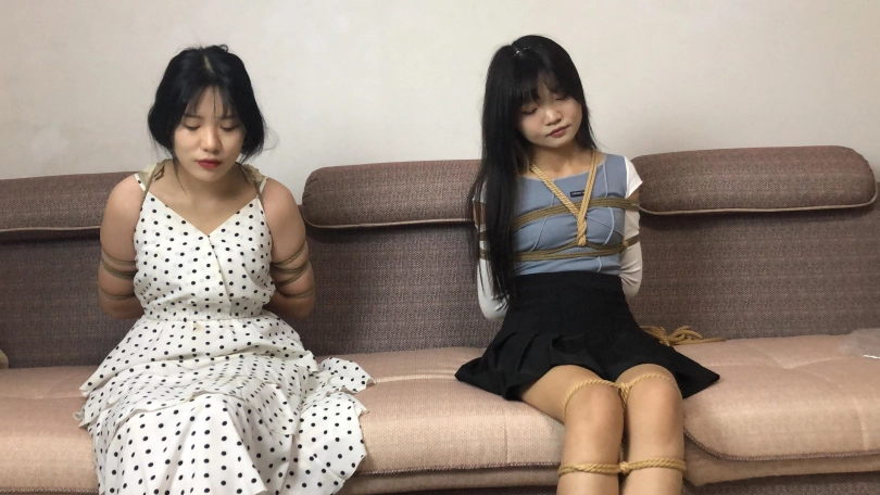 两个高颜值的美女,五官精致,中式五花绑了一个多小时也坚持下来了,韧性挺不错的。另外一个小美女呆萌可爱,带上口球口水就流下来了,想把口球吐出来却做不到,手脚也被绑着动不了,只能任由口水越流越多,把短裙都打湿了一大片,果然女生都是水做的,男生都喜欢水灵灵的女生。最后让两个美女互相解绑逃脱,被绑手脚的她们能否自己解开呢?