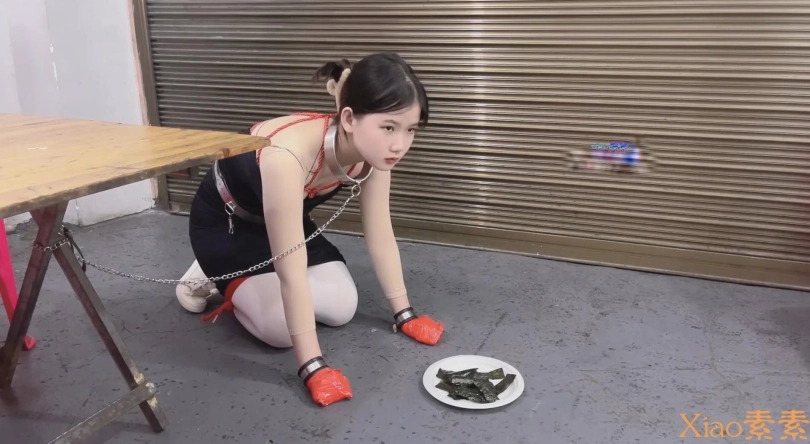 1、小美女折腾了大半天,戴着镣铐去餐馆吃饭,当然不会让她好好的吃。。。