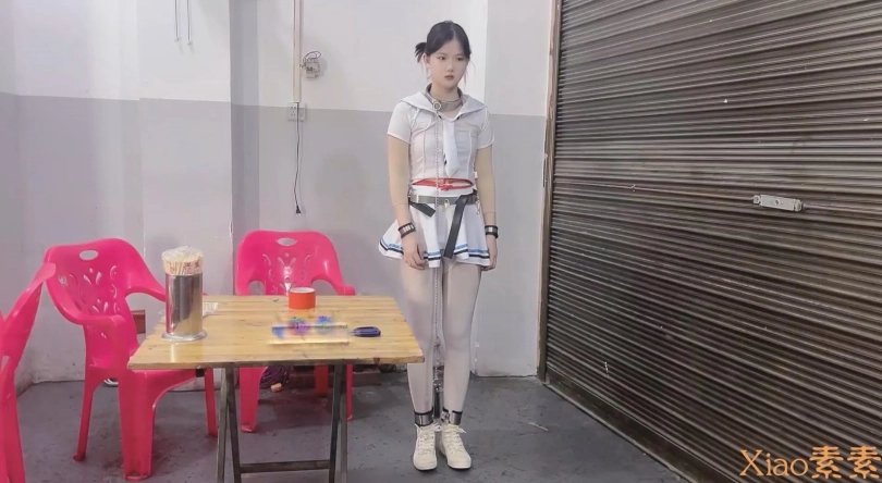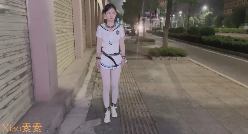 户外部分更是大胆精彩,可爱的小女奴戴着各种道具、镣铐走在熙来人往的街道,走进超市、小吃店,