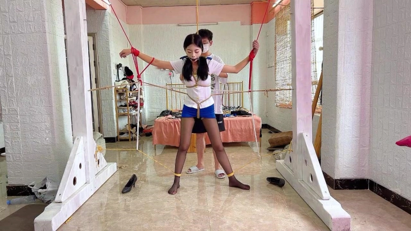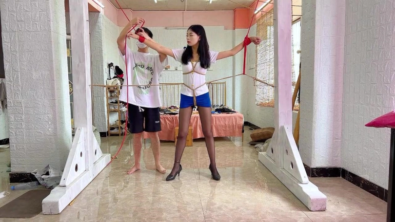 伊伊是我老婆的好姐妹,经常观看我老婆的KB视频,跟我老婆提了很多次想体验一下KB的感受,今天我就满足她这个要求,各种颜色缚身,大字KB,含口环,咬最大的球,嘴里的哈喇子一丝丝的流下来,伊伊内心深处的被虐心态被激发出来了。体验完后表示还想要多种不同KB姿势。
