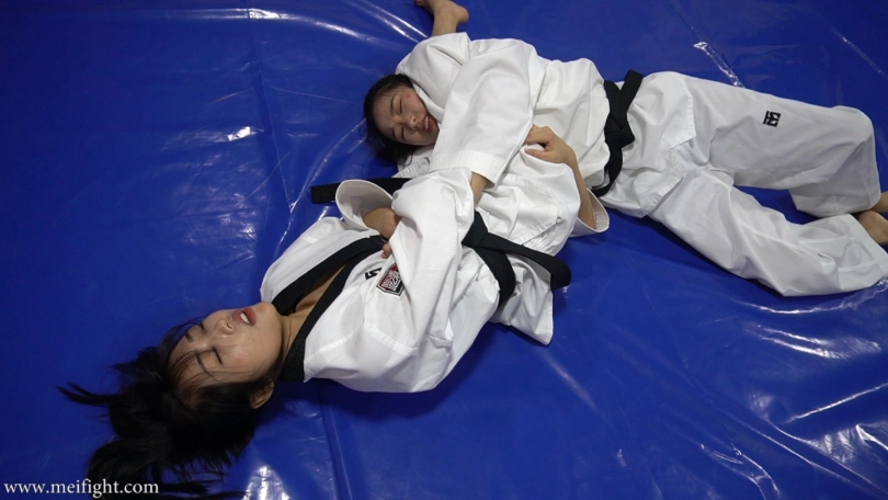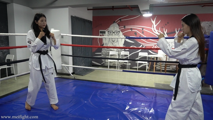Lexin and Tang were wearing taekwondo suits. But they didn‘t just play kickboxing. They agreed not only to kick, but also to punch and wrestle. It was more like a mixed martial arts game...