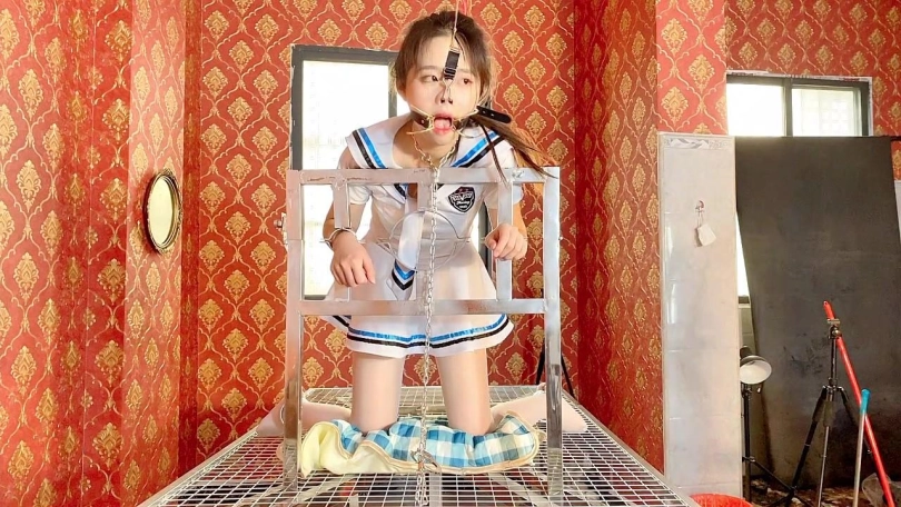 老公把老婆KB在铁网床上,问老婆:gc了吗,舒服吗,为什么哭了啊,然后用TD玩弄老婆,还要老婆跪在床上,慢慢TJ。