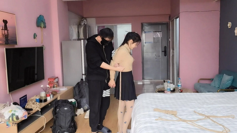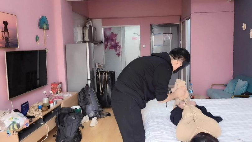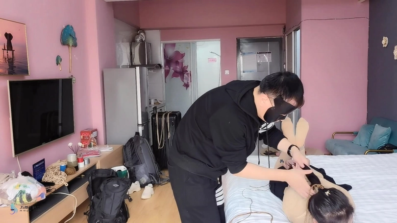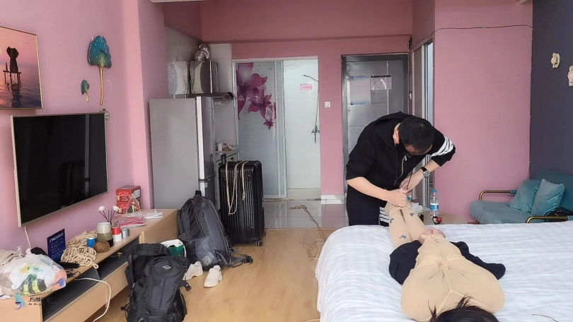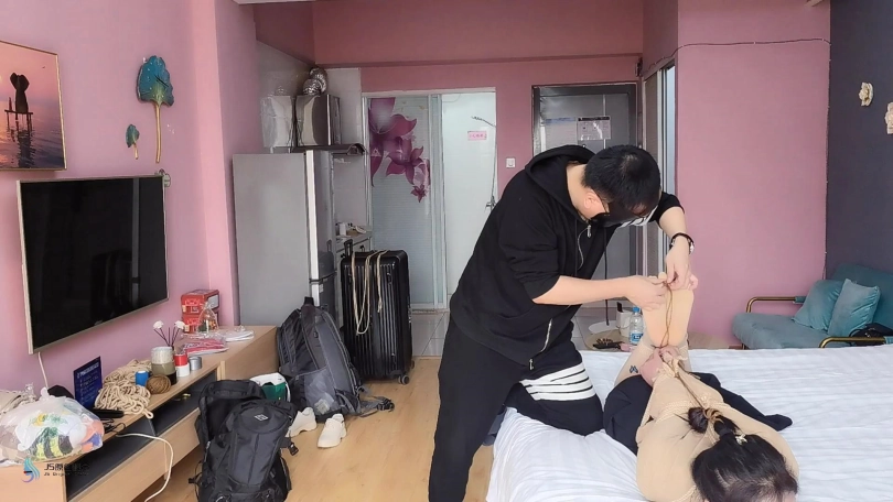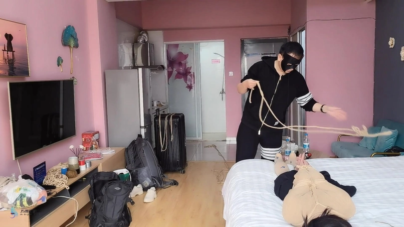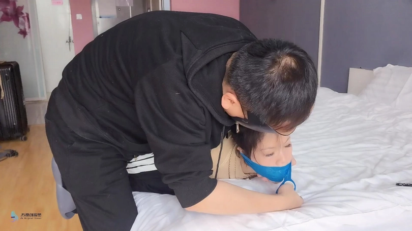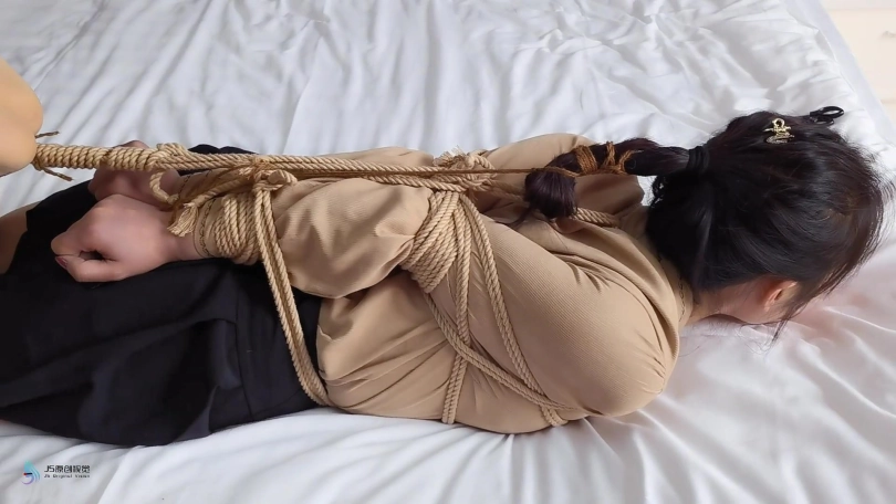超紧的直臂驷马捆绑起来,连头发和脚趾也绑上。用原味棉袜塞进她的嘴里,外面用绷带缠绕,防止她吐出袜子。用快乐棒不停的刺激着她的Y部。[X_X]不断袭来,受不了的发出“呜呜”声。。。