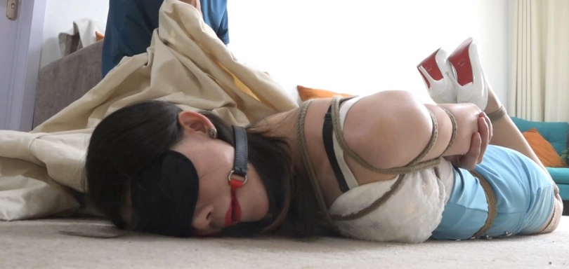 (这次安排的剧情背景灵感来自于以前看过的电视剧,讲述的是主角刘晓萌在师姐外出后收到的一封委托信为了不让这次委托落入他人之手从而代替师姐前往当铺完成委托任务发生的故事)刘小萌自从上次和自己师姐玩过捆绑之后便留在了师姐的侦探所内。这天刘小萌坐在办公室内,突然收到一封委托信,但是师姐也是外出好几天没回来了,刘小萌的好奇心让她打开了信封。信中的内容是委托人在一家当铺中将一块钻石当了出去,但是等他拿到钱之后,立刻反悔想将钻石盗回来,但是那个店铺非常神秘,而且只接受女子进行交易,所以才联系了师姐的女子侦探所。了解到事情的原委之后,刘小萌看着那丰厚的委托金自言自语的说:“师姐都出去这么多天了,也不知道什么时候回来,要是委托人等不及另寻他人,这笔丰厚的委托金可是白白溜走了。”沉思了许久刘小萌说:“反正假期还有一段时间,就让我帮我那师姐完成这份任务吧。”而刘小萌也是通过自己的身份拿到了一个秘书身份,为自己的老板去赎回老板抵押的东西。刘小萌来到委托信中说的地址,刘小萌推开门走了进去,迎面走来的是一名男子。刘小萌进门坐了下来说:“你好,我姓刘,是陈老板吗?我是李老板的秘书,上次他在你们当铺抵押了一件物品,这次我也是为了赎回那件物品的。”男子:“没想到这次来的是您这么漂亮的一位小姐。我不是老板,我只是当铺的一名总管,你可以叫我王总管。”刘小萌:“王总管过奖了,那我可以先看看物品吗?”王总管:“当然可以了。”接着拿来一个手提包,刘小萌打开皮包但是里面却是几捆绳子。刘小萌皱着眉头说:“王总管,你这是什么意思。”王总管:“不好意思刘小姐,我想你前来进行交易也应该知道我们当铺是非常神秘的,这只是我们当铺的接头地点,而且抵押人的物品都是非常珍贵的,这些东西自然有很多人想要盗取,所以我们也要限制交易人的活动,将您带到我们真正的当铺去。”刘小萌撅着嘴不高兴的说:“没想到还有这样的规矩,早知道不来了。”王总管:“刘小姐您放心,我们会保证你的安全的。”刘小萌:“那好吧,那就将捆吧。”随后男子将刘小萌后手缚捆绑起来,捆一个股绳,双腿捆三道绳子,然后驷马捆绑起来,戴上眼罩口球。捆好之后王总管说:“刘小姐,你委屈一下我们马上就到了。我先去准备一下。”随后留下刘小萌一个人独自挣扎。结尾的时候男子将柳洋捂晕,然后将柳洋装进大口袋或者箱子里~