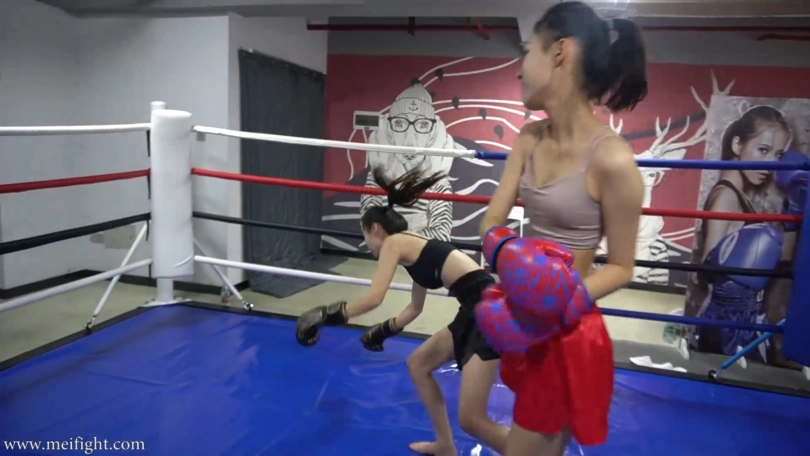 This time, Ling was fighting against a novice Qian. Ling was confident. She also had more experience than Qian. But Qian thought she had the advantage because she is taller.