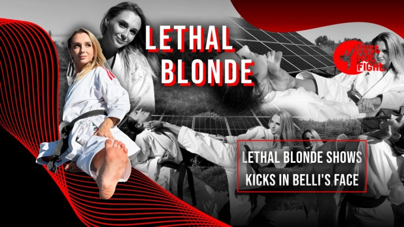 Lethal Blonde wants to show off her karate kicks. Bella had no choice but to agree to be a mannequin. Also, look what happened to her face after that