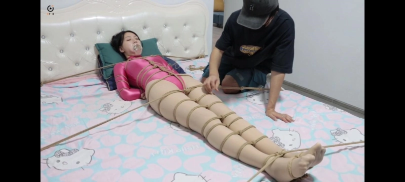 模特沈抒。接上集小刘让女友躺到健身器材上开始捆绑上半身胸缚,然后再绑到上面脖子也缠上几圈。腿和脚也拿绳子绑起来,(用漏眼口球戴上攒口水。绑完后便开始挠痒和用情趣鞭子打她,女友发出呜呜的声音。拿出小刷子继续挠脚心挠个几分钟。玩偶女友大笑不止,男主将健身器放平,口水便都进入她的嘴中,男主:怎么样啊好喝吗,女友乖乖点头,男主:让你玩点刺激的随后拿来电击棒)电击她的屁股胸部和脖子。并且男主拿出遥控器点了失禁状态,并且拿来充气口塞将她嘴充到最大,将内部震动状态开启到最大,女友难受的呜呜的叫着,坚持不住便失禁了。男主:刺激吧,继续享受吧,新一轮折磨开始。绑在床上,男主躺在床上抚摸着她,女友也表现出很享受的样子,男主给她戴上扩口器,将她嘴里用丝袜塞满拿胶带堵好,绑好后继续抚摸挠痒她,用绳子把眼睛缠住。然后便又开始一轮挠痒电击,女友只能一直挣扎叫个不停,看着她的脚于是将大母脚趾绑起来,并且疯狂挠她的脚心挠个几分钟,还伴随鞭打和电击棒的折磨电击时演出那种被电的感觉,然后开启[X_X]模式,演出那种喘不上气的感觉,玩偶女友也累的坚持不住,男主便开启石化僵硬模式,玩偶女友便像雕塑一样瞬间僵硬,完全无法动弹无论男主怎样抚摸挠痒都没有感觉,好了,我要抱着你休息了男主抱着自己的女友心满意足的睡着了。