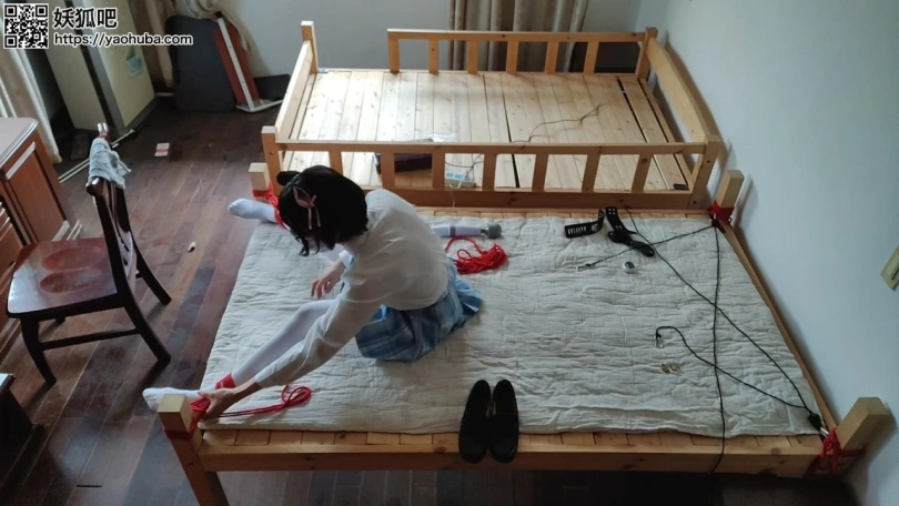 终于又可以偷空悄咪咪录自缚啦,这回是白丝jk!床上大字定时自缚!用了棒棒~