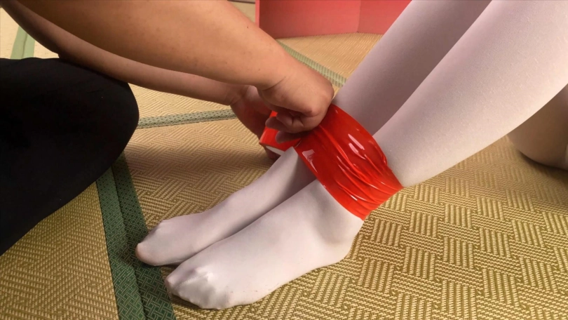 【象人】猫猫-胶带束缚,长身挣扎,红胶带+白丝。