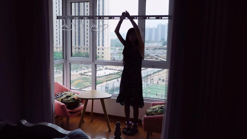 安艺真的是大长腿美人,不过似乎是个冰美人哎,冰美人和镣铐更配哦!!!女神独自在家寂寞了,竟然在窗前晾衣杆上玩镣铐自缚,双手吊起来,结果钥匙掉地,自己解不开了哈哈哈!!!太傻了!!!还被合租的男室友发现了,这下可有的玩了哈哈哈!!!