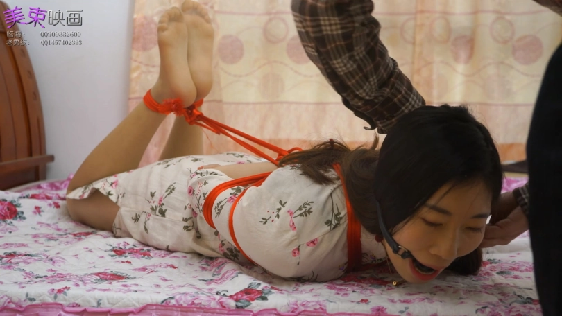 古朴旗袍与红绳更搭配,模特丝袜脚还不错,绑成驷马挠脚底很好玩。