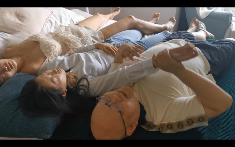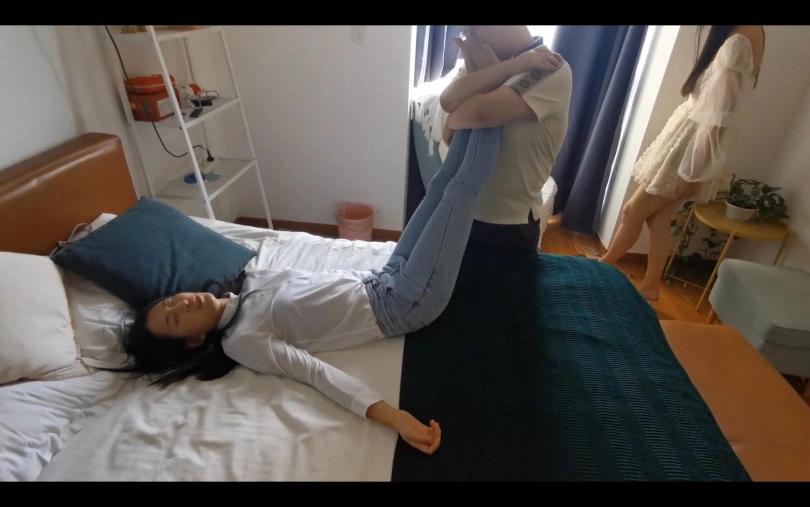 光头大叔设计前后弄晕两个妹子,然后把他们放到床上摆弄,涉及元素有昏迷、摆弄、翻眼皮、恋足等。