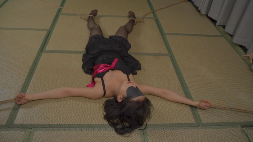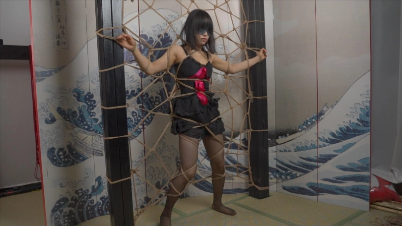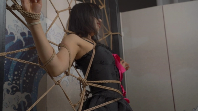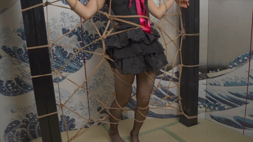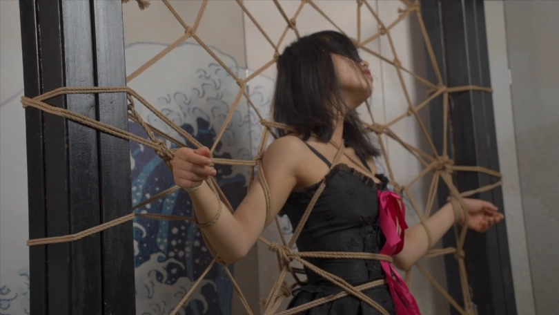 小0被大字型捆绑起来,不停的挣扎想要逃脱出去!