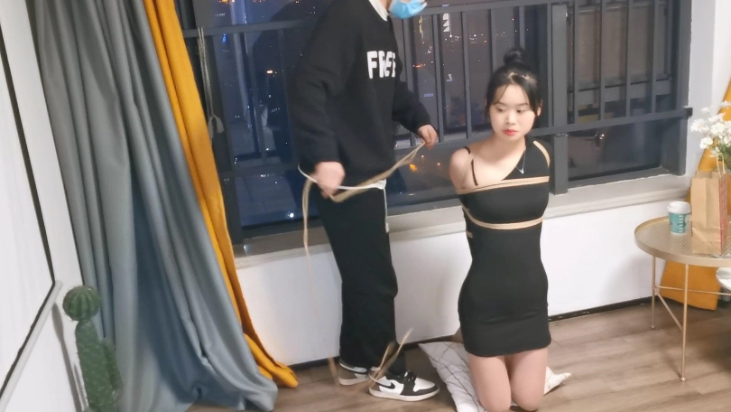新模特小荣,妹子身材和柔韧性都很不错,这次绑的是直臂跪缚放置,还用了妹子以前没见过的假DD深喉口塞,清纯的小妹妹见到这个也是比较懵逼的,放置过程中紧紧的含着都不敢张嘴。