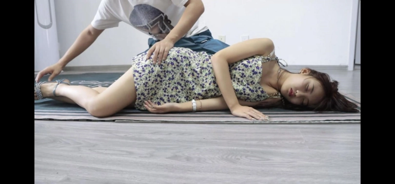 小哥骑车撞晕妹子,却把妹子带回家玩弄。涉及元素有昏迷、裸足、高跟凉鞋、摆弄、翻眼皮、公主抱等。