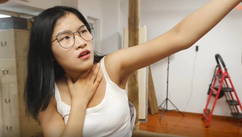 模特选用的是可可,身穿瑜伽裤白袜贝壳头,题材选用了潜入被发现后被虐杀。