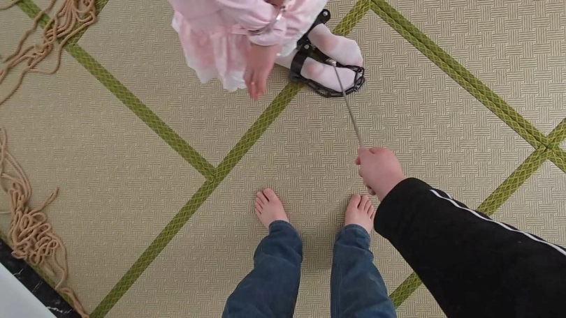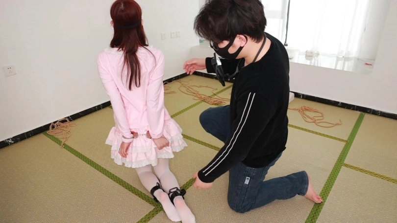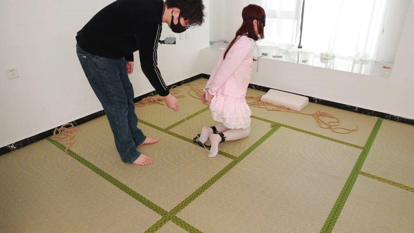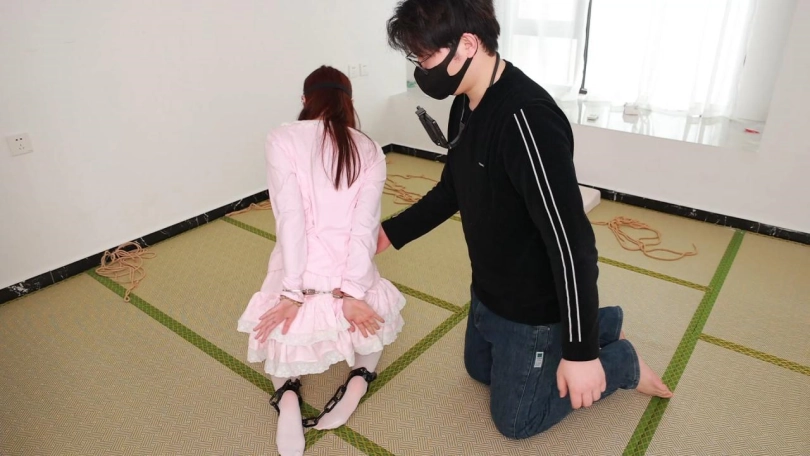 小眠妹妹被戴上手铐脚镣,限定在房间的6块地板的范围里。不允许跑出这个范围,只能在这个范围里面躲避老白的挠痒咸猪手。挣扎的过程憨态可掬,非常可爱。