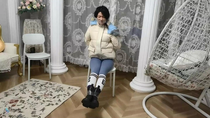 女孩在回家的路上被男人跟踪。就在女孩开门的一瞬间,男人闯了进来,并捂住女孩的嘴巴。男人用胶带将女孩的手脚捆绑了起来,嘴巴也缠绕住,将女孩放在椅子上。男人在衣柜中找到女孩的一些衣服和围巾。解除女孩嘴上的胶带,用围巾缠住女孩的嘴和脖子。男人离开,留下女孩独自的挣扎着。