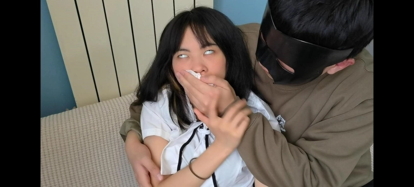 美女激辣一个人在沙发上发呆,突然被一面具男偷袭捂晕,激辣无力反抗只能任由面具男摸玩身体,每次被捂时都会挣扎并不断翻白眼,剧情非常诱人!