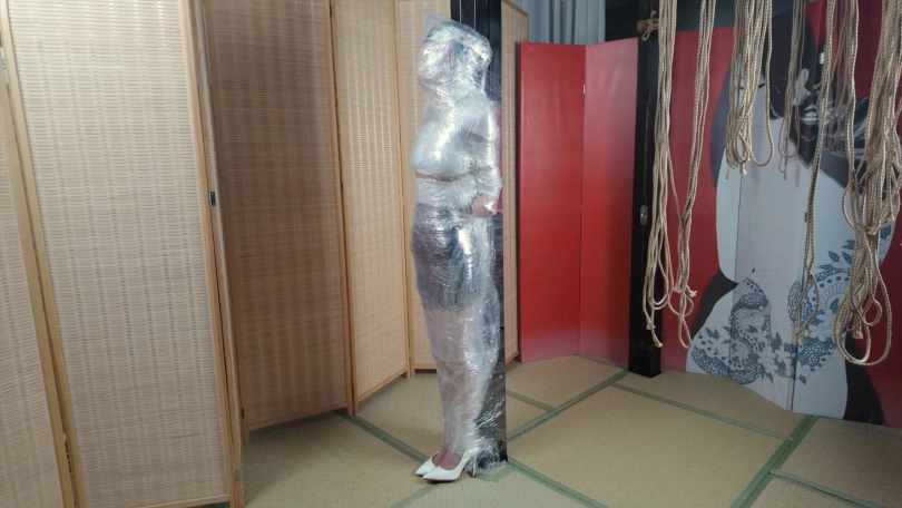 【象人】全包!嗷嗷-绑架小秘书,驷马放置后保鲜膜全包+大塑料袋包裹+缠绕柱缚!(结束感受采访)
