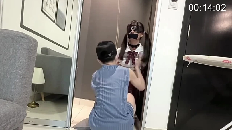 小鱼被sp完后被带到了衣柜前 绑上了折腿缚 然后被迫跪吊在衣柜里强高 gc了之后还被拖出来沙发前继续强高 见小鱼累的气喘吁吁才肯放过她