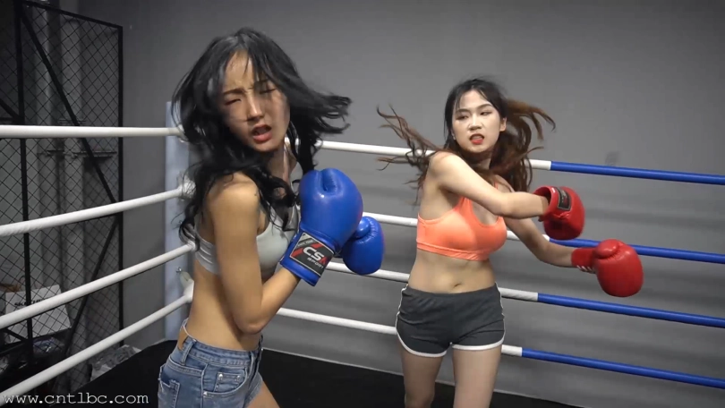 Jing VS Yue.The two girls are equal in strength.They hit each other in the face with boxing and elbows, kicked and kicked each other‘s abdomen on the top of their knees.It was a close match...
