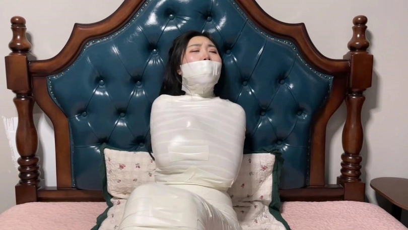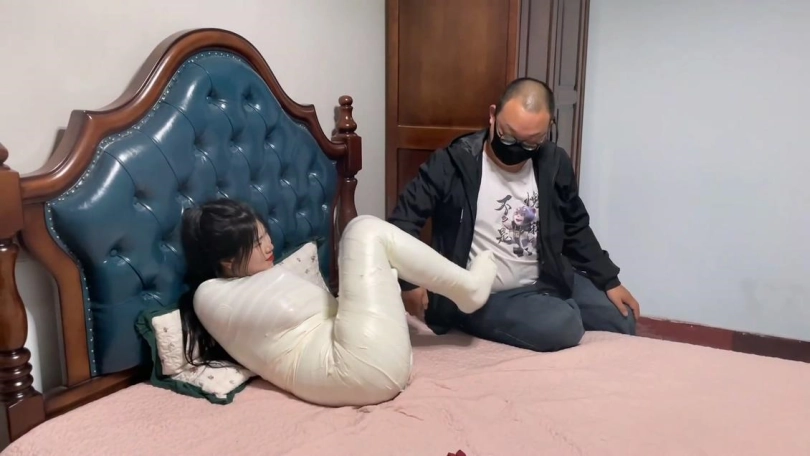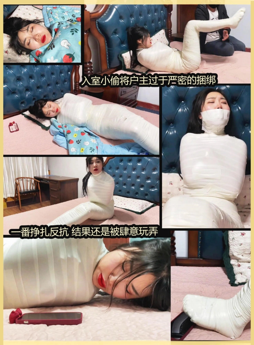 【逍遥】《过于谨慎的小偷 上》入室小偷将熟睡的美女严密包裹 变成了木乃伊 可怜美女户主奋力挣扎 踢踹小偷却被轻易制服玩弄