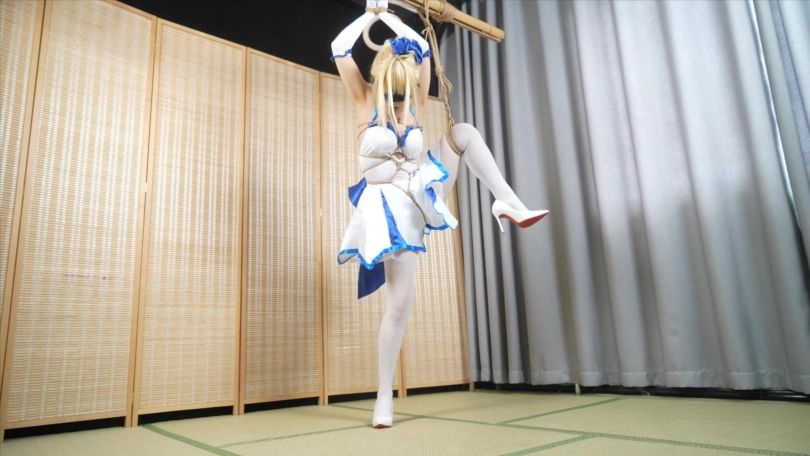 【象人】小0-cos Saber大小姐,深厚口球,单脚吊缚+蛇缚+M腿 4K画质!